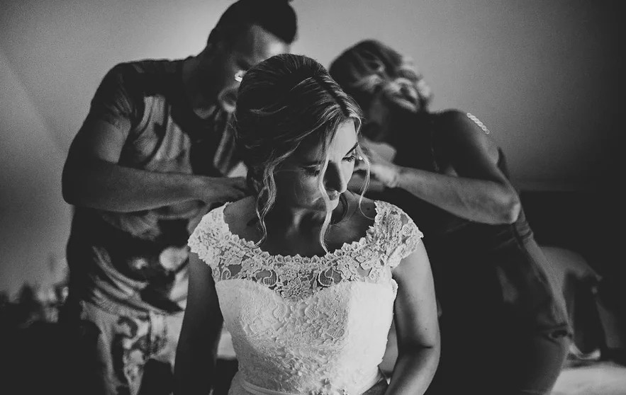 - jaz na lokaciji ostanem cel dan in skrbim za frizuro in makeup, za vsa slikanja itd.